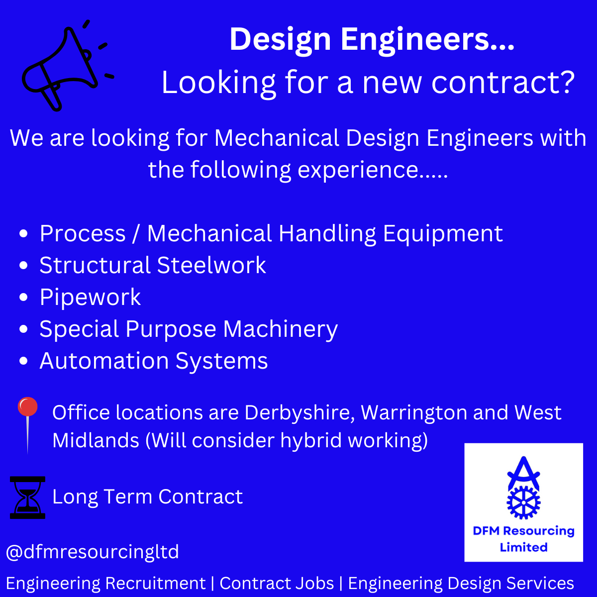 📢 EXCITING CONTRACT DESIGN ENGINEER OPPORTUNITY! Are you looking for a new challenge commencing February / March 2025? We have a number of #designengineer #contract roles available for candidates with a variety of engineering industry experience (details below). ✨ Long Term (12 months+) 🌍 Vario...Read more